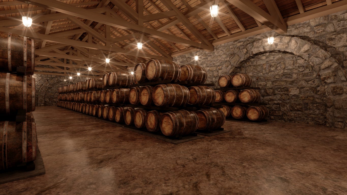 Wine ageing in wooden barrels